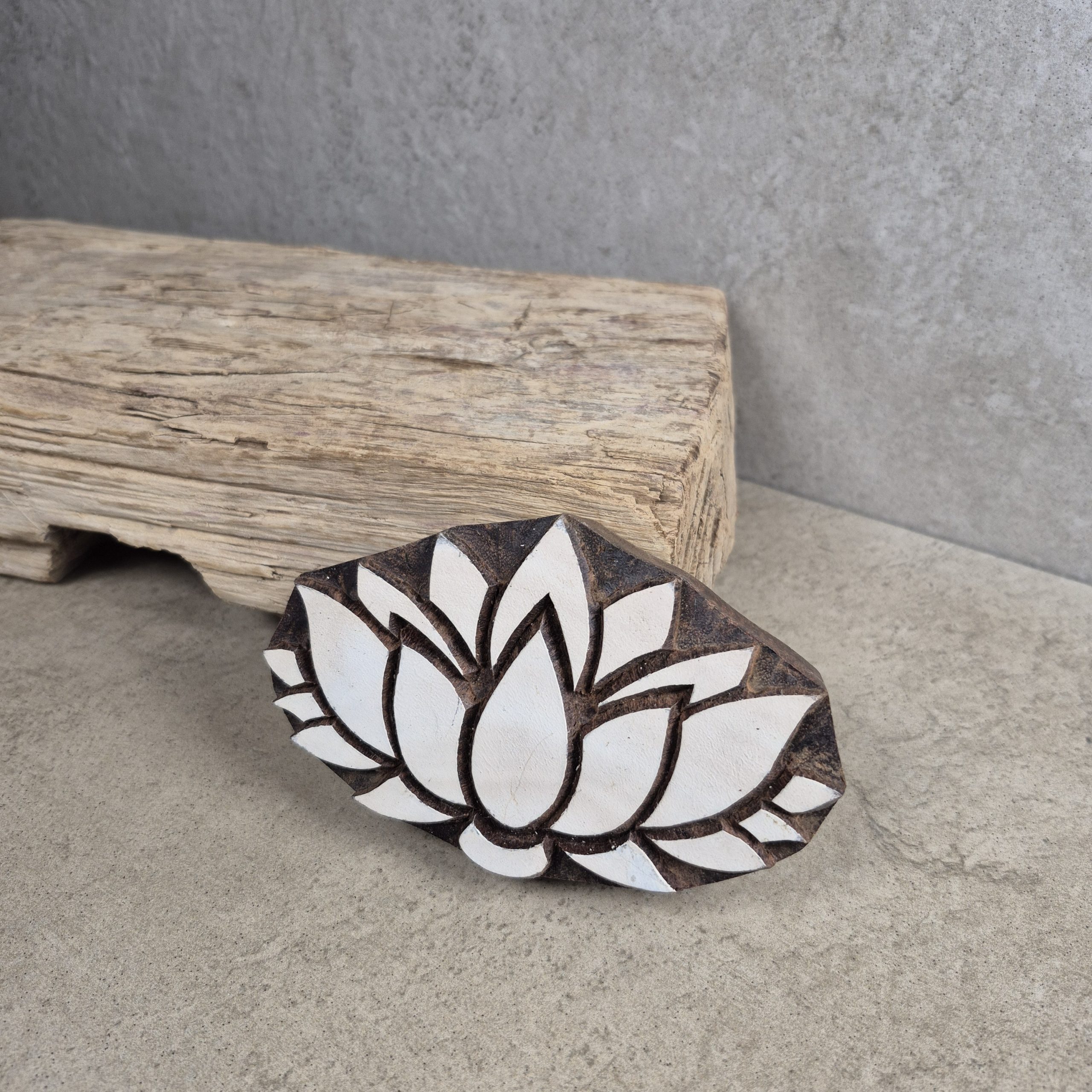 Featuring the Daecour exclusive Lotus Flower which inspired our logo. Create the unique in all you do with this custom made print block. Functional and stylish, use them on your favorite textiles or put on display by your favorite book. Hand carved in India.