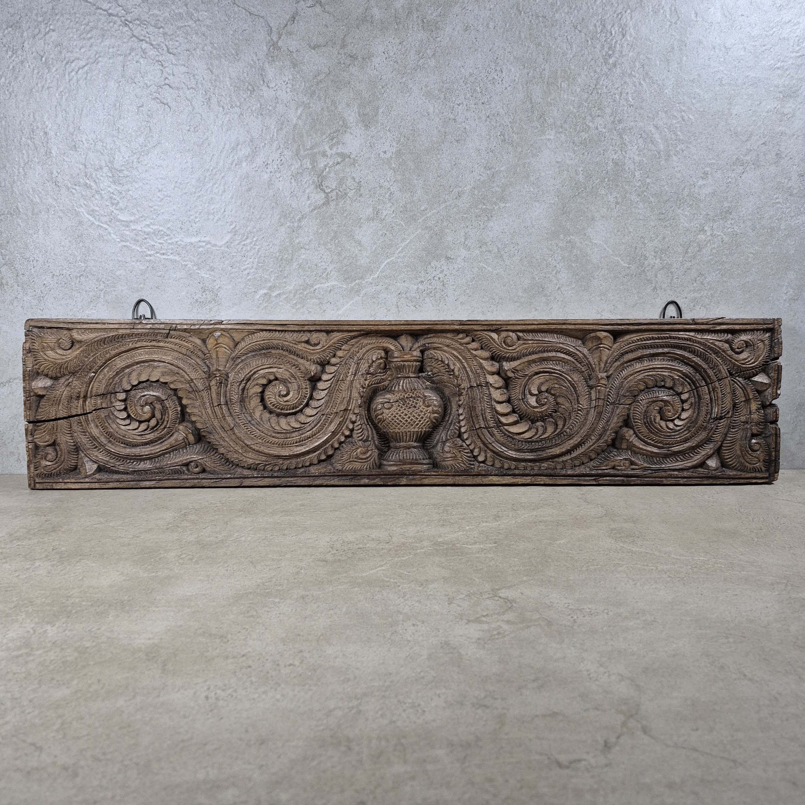 These antique hand-carved wooden wall décor panels are extraordinary examples of traditional artisan craftsmanship, cultural heritage, and timeless design. Handcrafted in India between circa 1938–1958, each panel reflects a period when decorative architectural elements were created entirely by hand, using time-honored carving techniques passed down through generations of skilled artisans.
